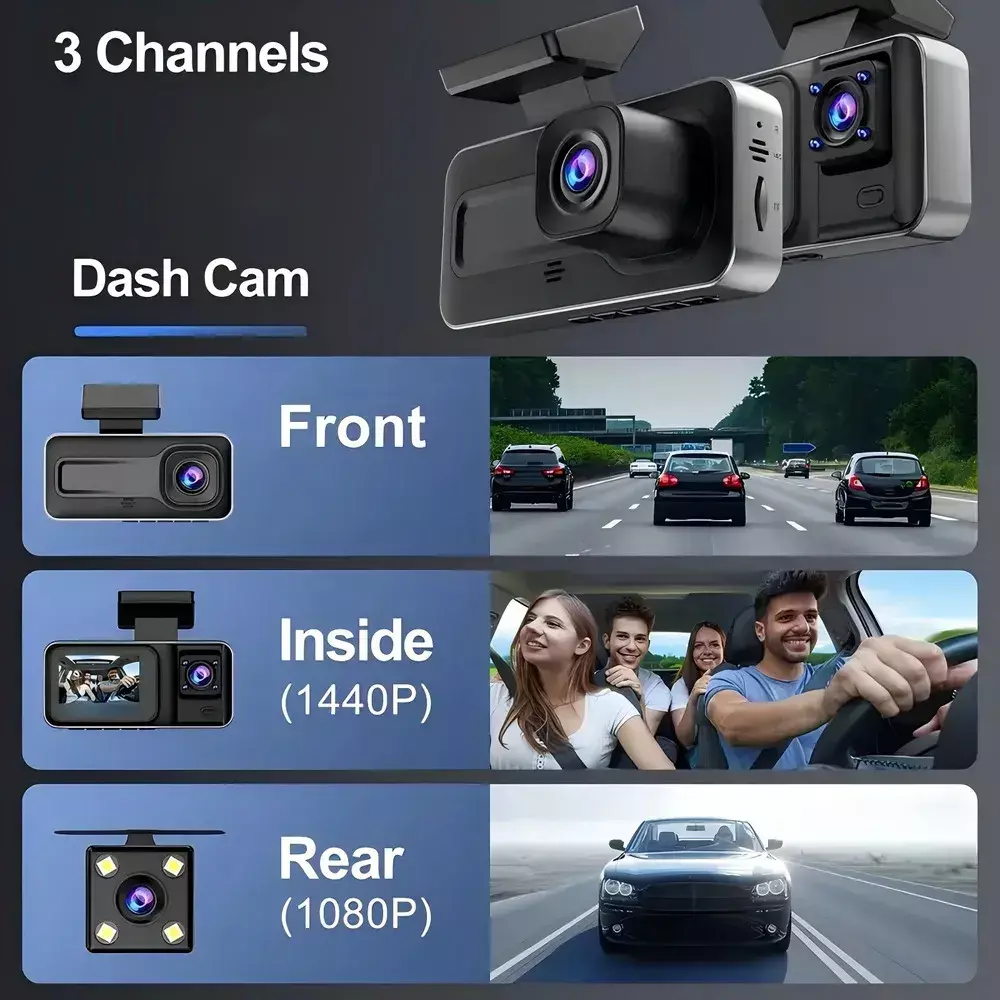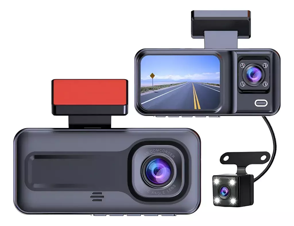 📹 Gravação Tripla – Câmeras frontal, interna e traseira (RE) em um só dispositivo.